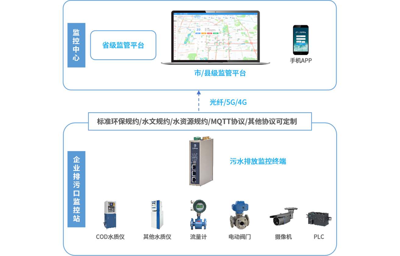 在企业污水排放口安装各类水质监测仪器(如化学需氧量分析仪、氨氮测定仪、重金属检测仪等)和流量计,通过物通博联的工业智能网关将采集到的污水排放数据(包括流量、水质指标等)实时传输至污水排放监测平台。平台对数据进行实时分析和存储,当水质超标时立即发出预警,并将相关信息发送给环保监管部门。同时,平台具备数据统计分析功能,可生成排放报告,支持远程监管执法和企业的合规管理。