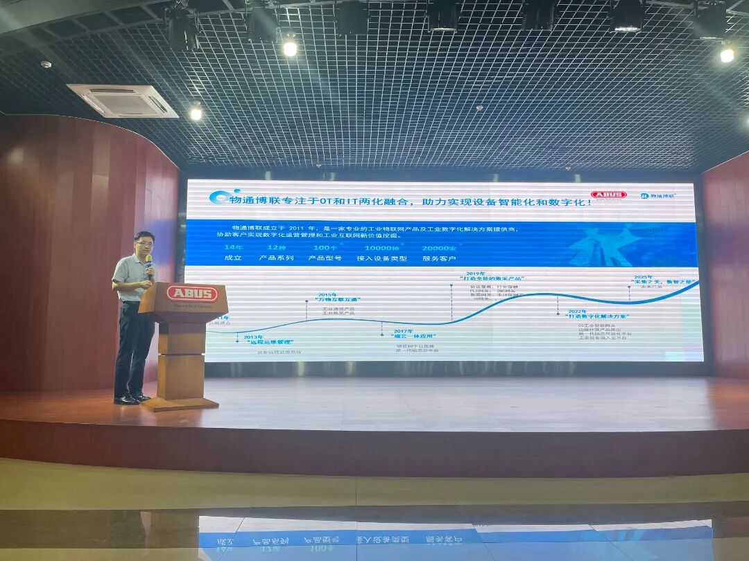 会上,刘明德总经理围绕物通博联在工业物联网领域的技术积累、项目经验展开详细介绍,并针对本次万晖五金设备数据采集项目的具体规划、核心技术方案、实施团队配置及全流程运维保障进行了全面阐述。从项目启动后的需求落地、设备接入,到数据采集、分析应用,再到后期持续运维服务,每一个环节的部署都清晰明确,让在场嘉宾对项目的顺利推进与成功落地充满信心。
