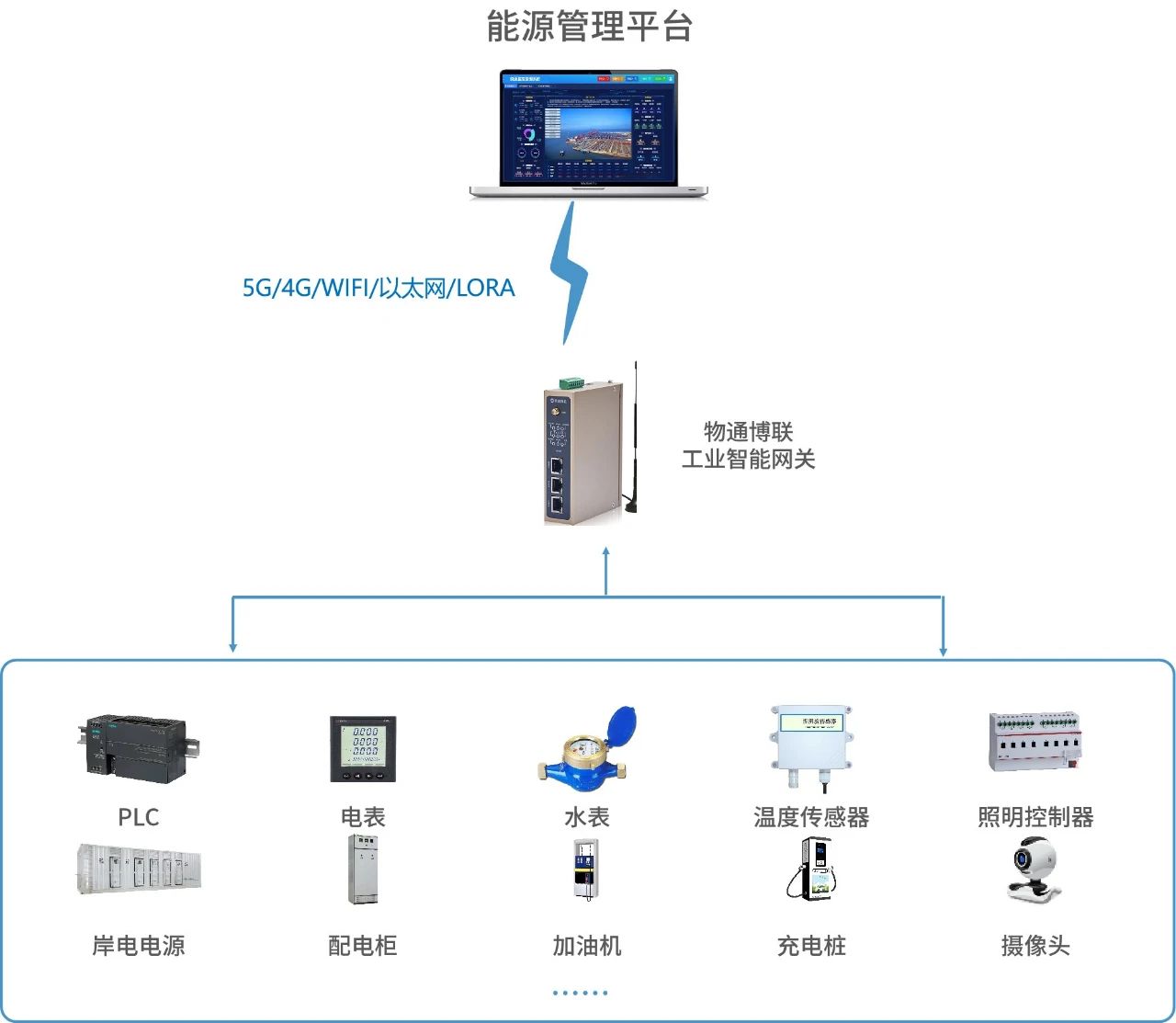 物通博联提供“LORA无线终端+数据采集网关”的解决方案。现场高杆灯控制箱的DI、DO连接LORA无线终端,LORA无线终端能够采集高杠灯开关信息并通过LORA无线网络传输到数据采集网关中,数据采集网关则部署到港口信息化监控中心内,通过以太网接入管理平台中,从而实现两者的组网通信,为管理人员提供高杆灯远程监控、异常告警、远程控制与数据分析等功能,助力提高工作效率与管理水平。